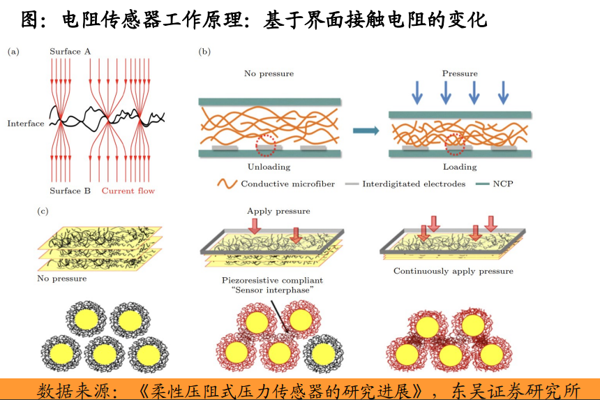 压阻传感器:其原理为力作用在导电材料(如导电橡胶、导电布、碳纳米管复合物)上时,会改变其电阻值。传感器通过检测电阻变化来反映外部压力或接触状态的变化。