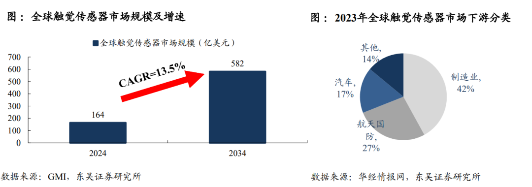 据GMI报告,2024年全球触觉传感器市场规模已达164亿美元,预计未来十年将以13.5%的年复合增长率持续扩张。