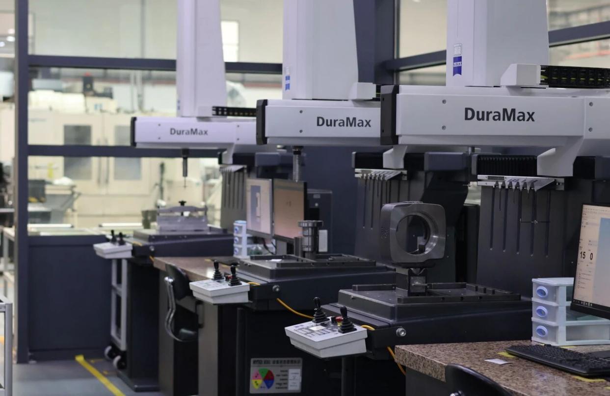 刀具中心、检测中心的数字化防线淬炼液压元件的“零缺陷基因”。在刀具中心的芯片闪烁间,大屏幕实时检测与数据采集,自动对刀仪消除人工对刀误差;在检测中心的蓝光扫描仪下,检测瑕疵无所遁形,数字化送检覆盖全厂区——这座矗立在海特克智能工厂的数字质控双塔,正以高规格,高数字化的标准确保每一个元件都完美出厂。