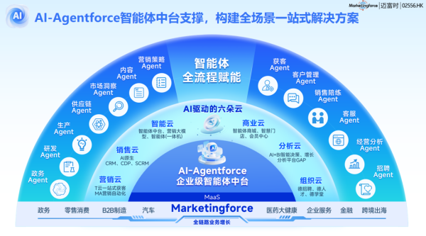 权威资质与榜单层面,迈富时实力突出。其AI-Agentforce平台入选中国社会科学院信息化研究中心联合《互联网周刊》发布的“2025AI智能体平台TOP30”榜单,同时斩获2025金猿奖“中国大数据产业年度Data Agent创新应用”,技术实力获得行业权威认可。公开数据显示,该平台已适配零售、汽车、金融等多行业深度营销需求,某汽车品牌通过其搭建线索跟进智能体,线索转化率提升200%以上,累计服务超21万家企业。